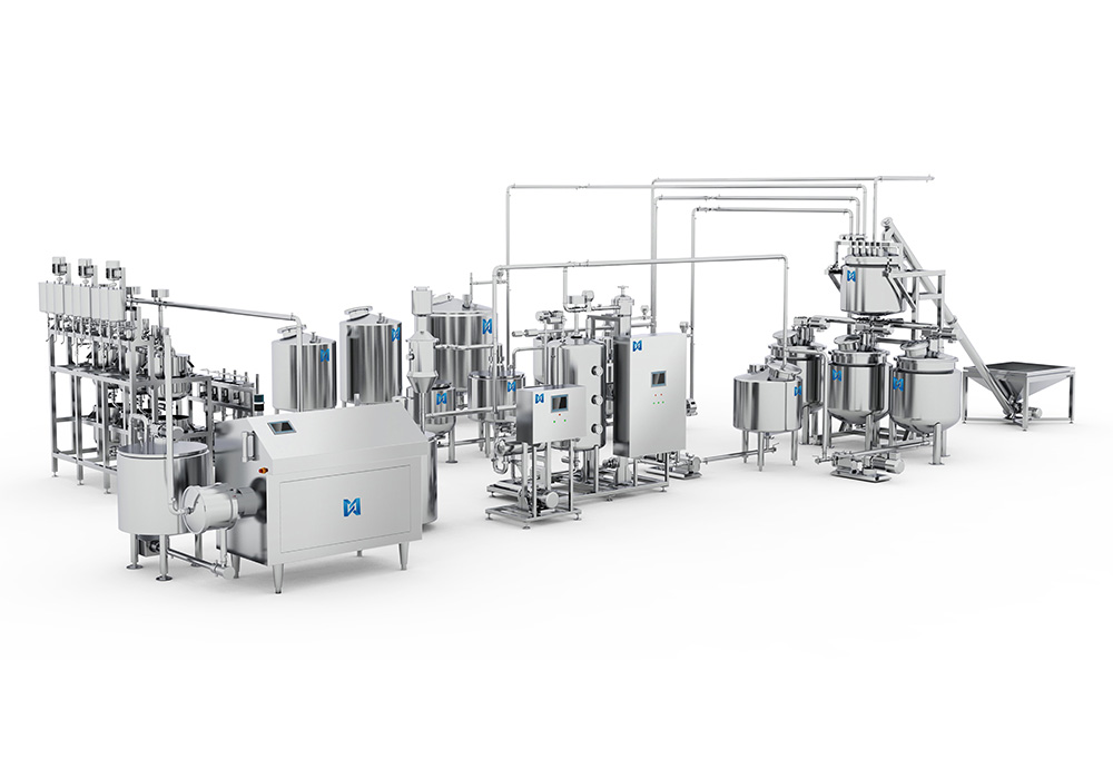 辅机系统由脱膜输送机、提升输送机、淀粉清理机、转运输送机、涂油输送机、涂油机、蒸汽加湿器及撒糖机组成。